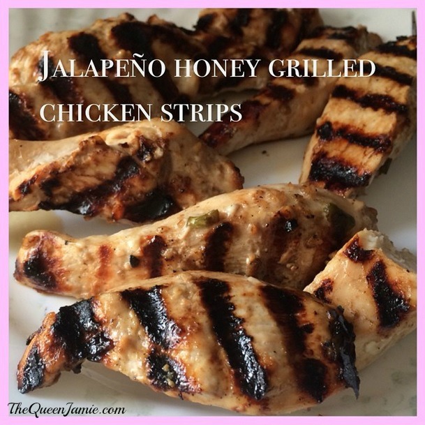 Summer time is all about grillin and let me tell you, I’ve really embraced that this year. I always left the grill cooking up to the men but now it’s my turn and I am loving it! Which is why I’m sharing with you my most recent culinary masterpiece! Jalapeno & Honey Grilled Chicken Strips. Oh My God they are wonderful.