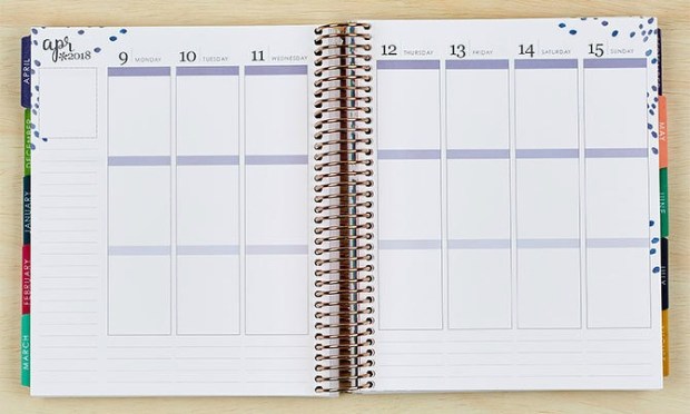 My third reason was the size. I chose the 6×8 inch lay flat hardcover planner with gold foil details for 2018. It is absolutely beautiful. Since it doesn’t have a ton of extra pages or a spiral ring binding it takes up a lot less space. It fits in every purse that I own comfortably. A bonus for me was this amazing keepsake box that the planner came in.