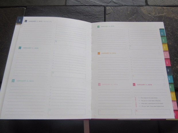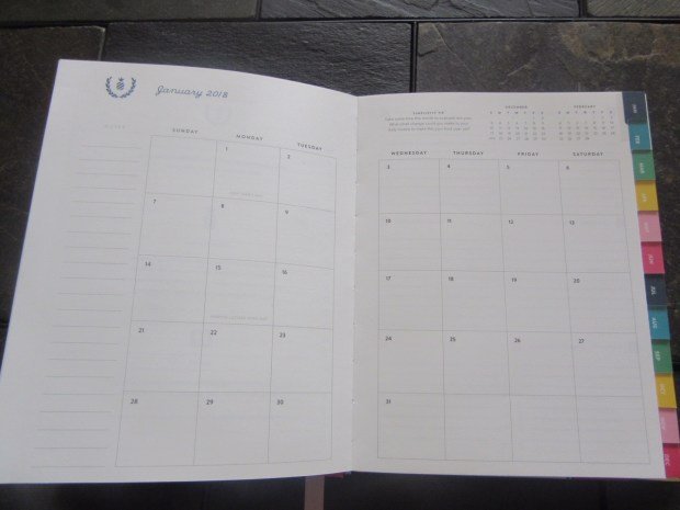 I decided to try this planner for a couple of reasons. First being the weekly/daily layout is perfect for what I need. A place to list tasks for the day, a place to list appointments, and a space for planning dinner for that evening. Second is the simple and efficient Month at a glance page and extra note pages. There are no unnecessary filler pages. Don’t get me wrong, inspirational quote pages are nice but I just don’t feel like I need that in my planner anymore. I want things to be simple, clear and straight forward.